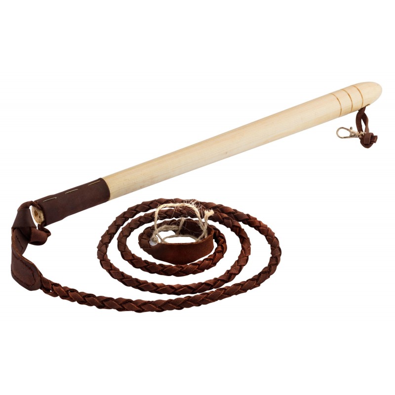 Utilisé principalement pendant la chasse à courre, le fouet de vénerie permet d'obtenir l'obéissance des chiens de chasse par le simple bruit du fouet.