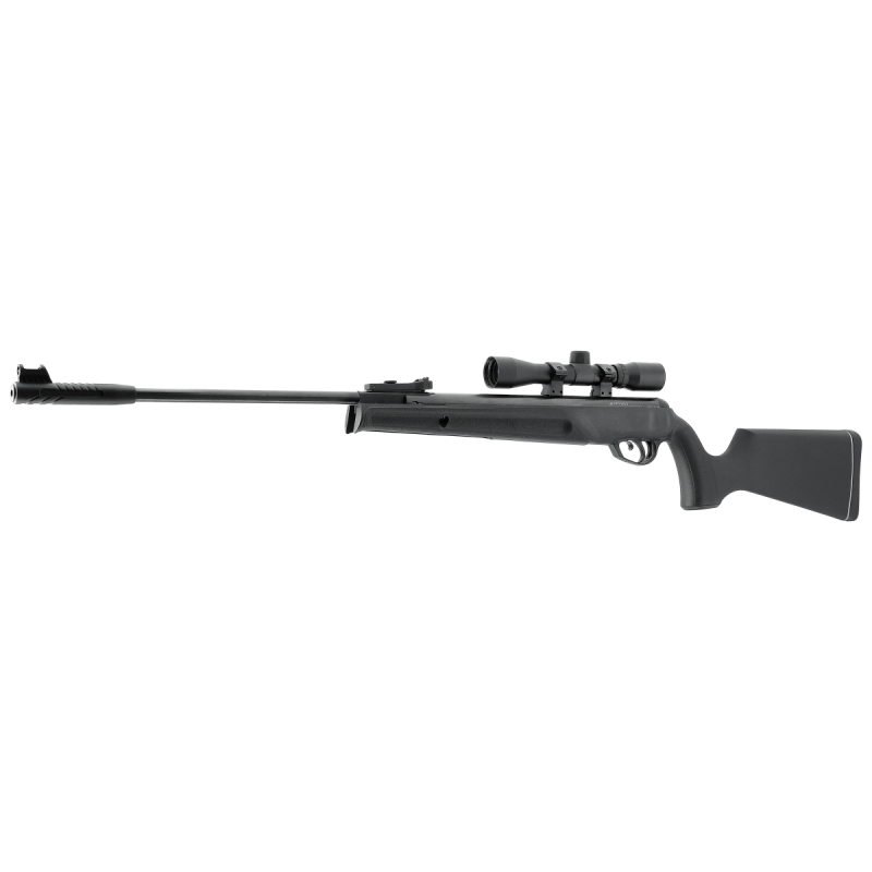 Ce set comprend une lunette 4x32, 100 plombs et 10 cibles. Elle dispose d'un canon rayé de 480 mm et développe une énergie inférieure à 16 joules, adaptée au tir précis sur cibles papier ou métal à courte et moyenne distance. La visée ouverte fibre optique avec hausse et guidon réglables permet un ajustement rapide.
