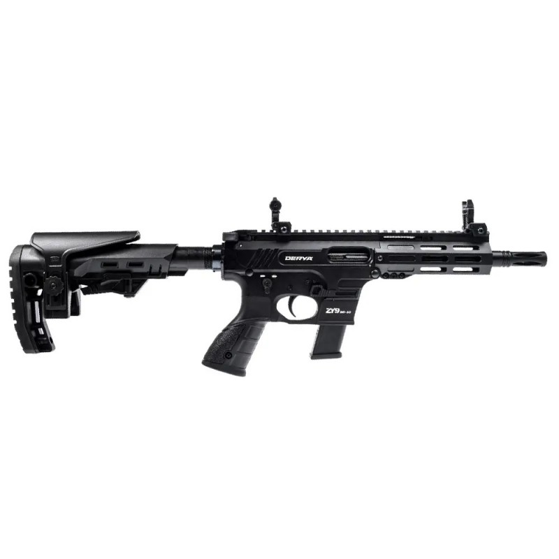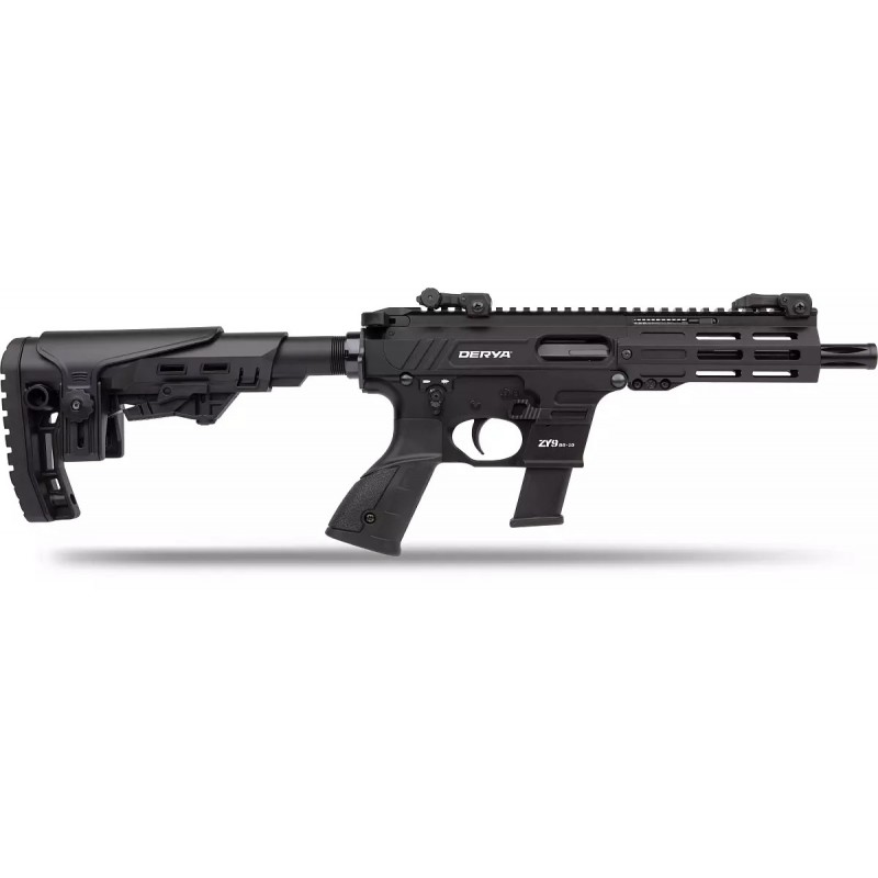 La carabine Derya ZY9 en calibre 9x19 mm, dotée d'un canon de 18 cm et d'une finition noire, est une arme semi-automatique de catégorie B, conçue pour le tir sportif et le loisir.