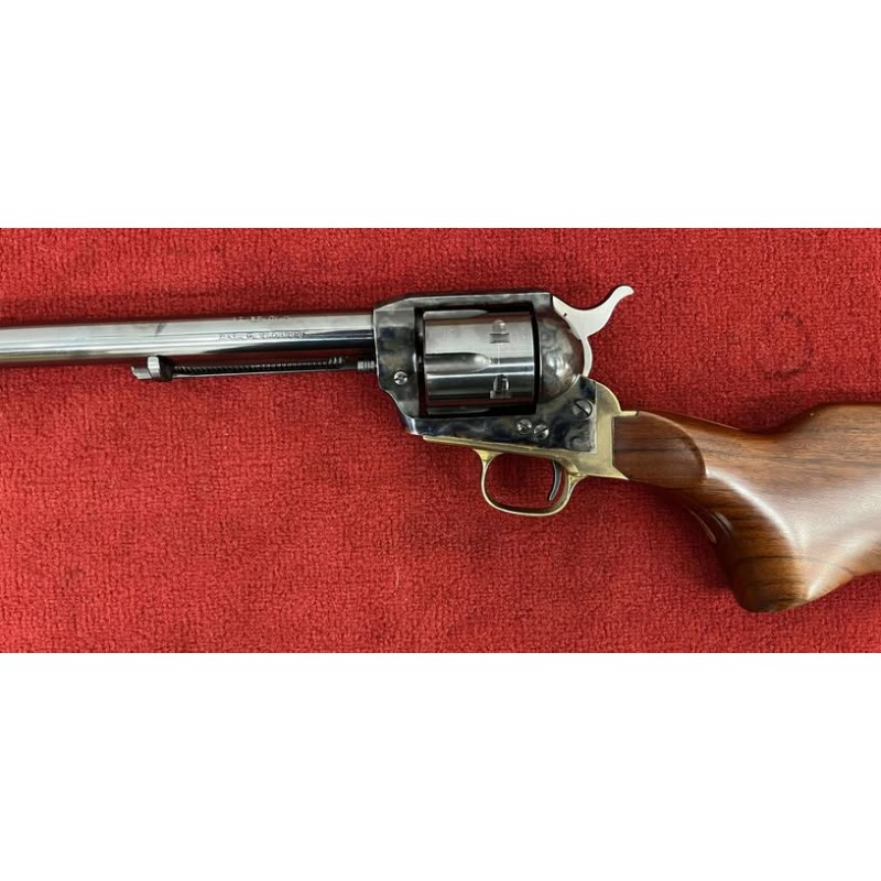 Son barillet de 6 coups permet un tir fluide et régulier, tandis que son canon de 47 cm assure une bonne stabilité et une performance de tir remarquable. La crosse, d’une longueur de 34,5 cm, offre une prise en main confortable et sécurisée.